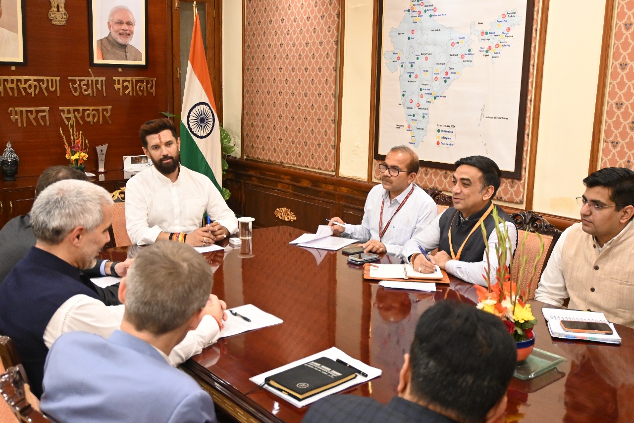 Home ›› Photo Gallery ›› A delegation from Pernod Ricard, led by Mr. Alexandre Ricard, Group Chairman & CEO, met Union Minister of #MOFPI Shri Chirag Paswan at Panchsheel Bhawan today. They discussed strategic plans, investment commitments, and explored opportunities to strengthe